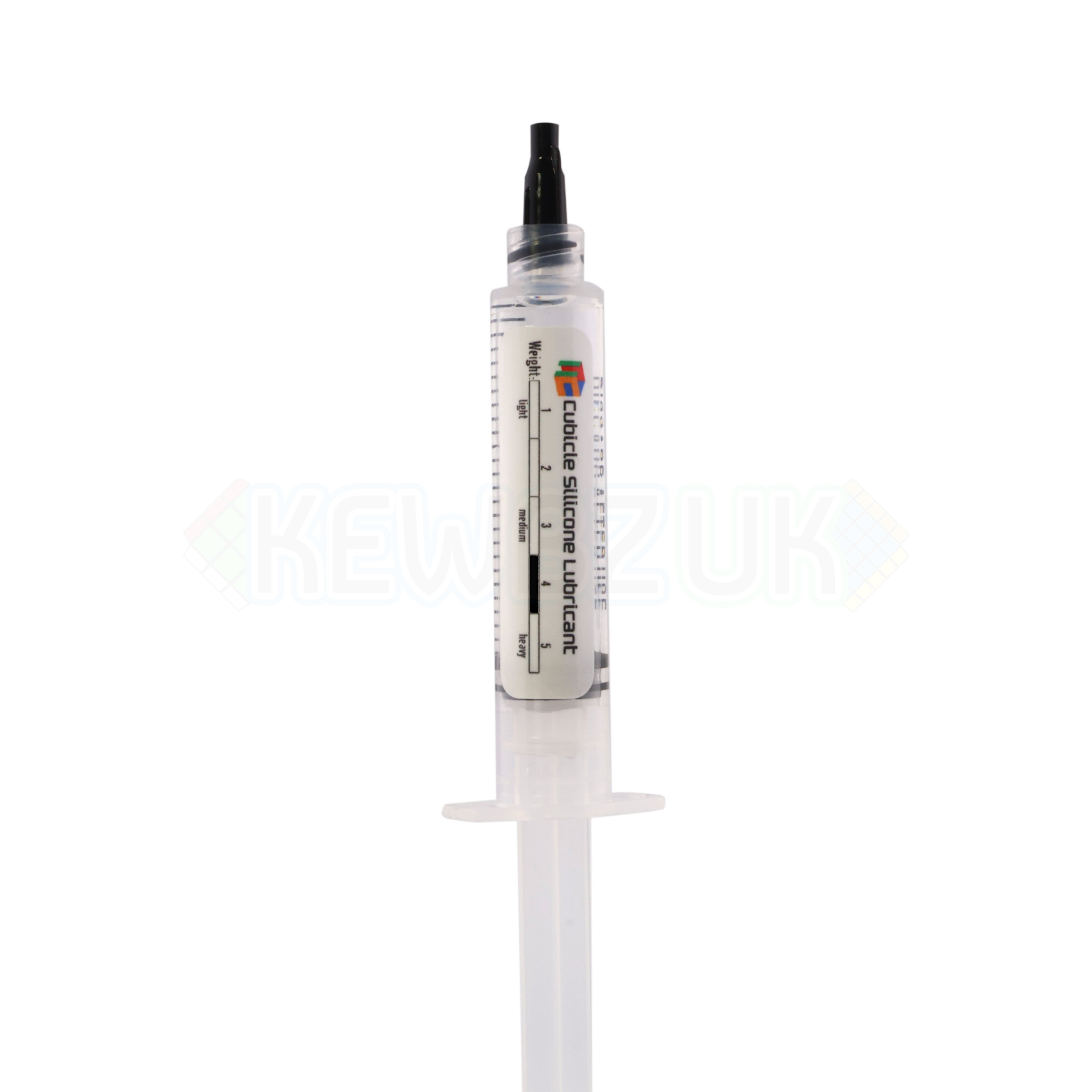This lube comes in the syringe style applicator so is perfect for presicion application. Being weight 4 it feels smooth and does the job of slowing the cube down. Apply sparingly, test for a few solves, then add more if needed. Don't add too much at once!! It'll make the cube feel far to sticky.
