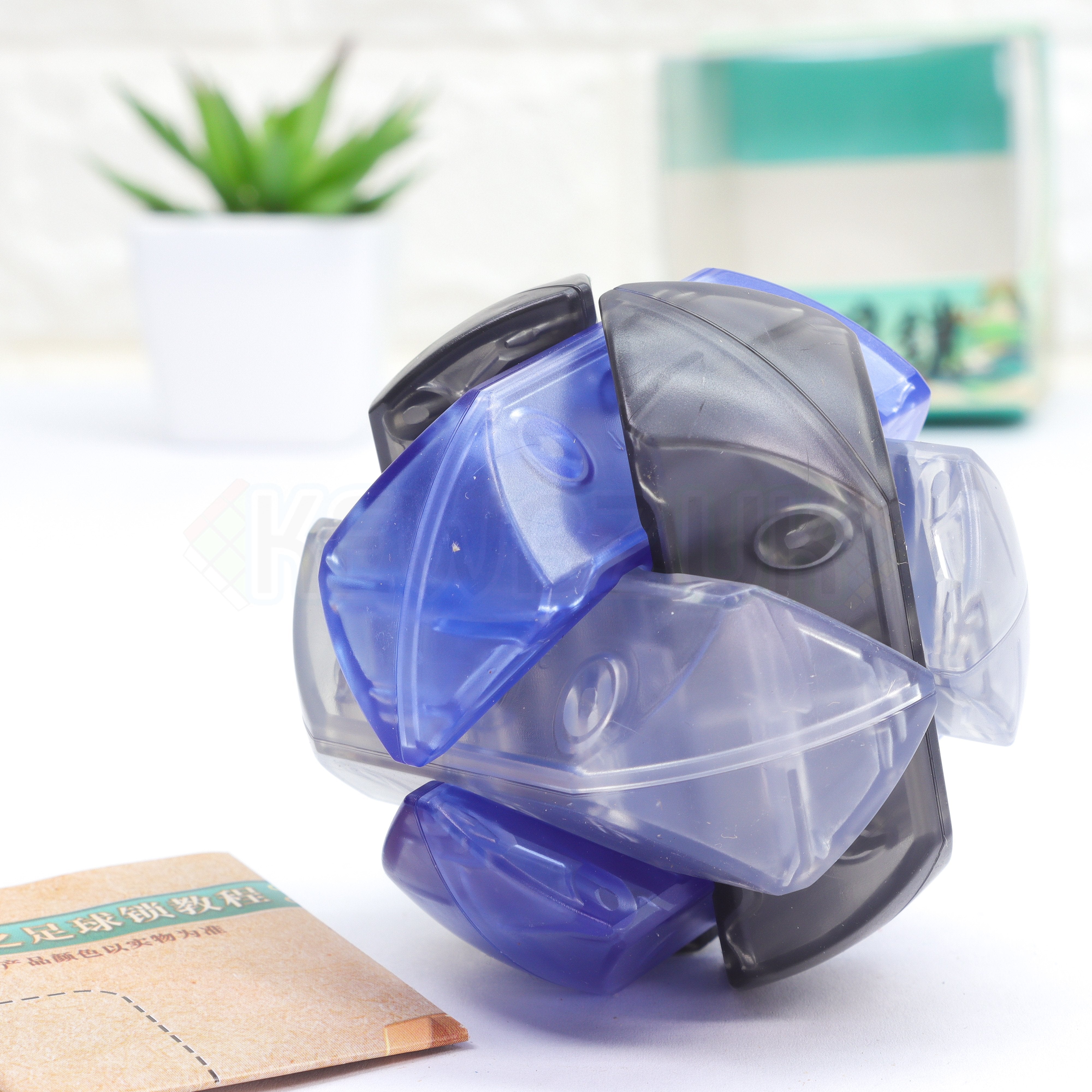 The Kongming Football Lock is a fresh take by QiYi on a popular wooden puzzle. This version is made of ABS plastic and boasts a beautiful crystal clear greyish exterior.
